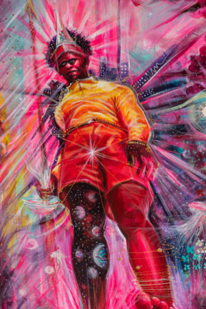 Astro Hunters is a captivating title that immediately piques the imagination. The image of multiple, surreal sharks hovering around the picture plane evokes a sense of both wonder and unease. It’s a scene that seems to defy the laws of nature, inviting the viewer to delve into a realm where the boundaries of reality are blurred.
